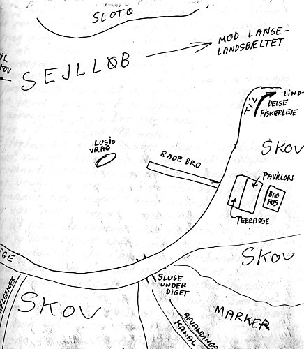 Jørgen Nielsens skitse over området ved Lindelse med vraget af Lusi i midten. Restauratør Eis havde altså alligevel fået glæde af sit køb af slæbebåden Lusi – om end ikke på den måde han havde tænkt sig det, da han købte den i 1920. For, som Eis sagde det: "Lusi trækker kunder til min restauration samtidig med at den glæder alle badegæsterne, både dem der bare kommer for at bade, og dem som efter badet søger herop til min forretning. Jeg har også bevaret mit venskab med kaptajn Gunnarsen, som sejler badegæsterne herud – uden udgift for mig. Og jeg har ingen udgifter på Lusi, som jeg jo ville have fået, hvis jeg havde restaureret den, hyret besætning til den, sat den i fart og skulle vedligeholde og betale skat af den. Så det er såmænd meget godt at den sank for mig derude. Den har hjulpet mig med at tjene pengene, jeg gav for den, ind igen uden en krones ekstra udgift for mig. Folk kan lide, at Lusi ligger derude, og så kan jeg også lide det – fordi det gavner mig." Og restauratør Eis havde ret i, at folk kunne lide at slæbebådsvraget lå derude i Lindelsebugten.
